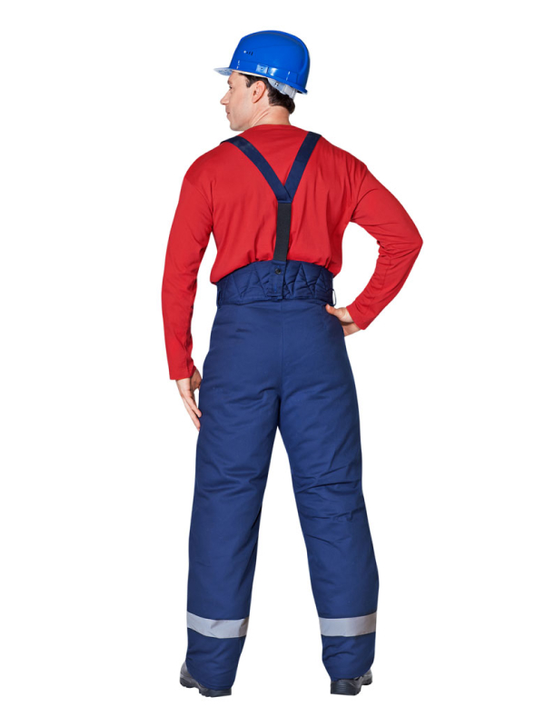 Защитные элементы: высокий стеганый пояс брюк, удлиненная спинка куртки.