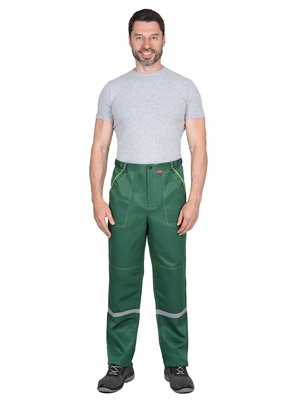 Куртка прямого силуэта, с центральной застежкой на молнию, клапаны карманов и манжеты застегиваются на кнопки. Брюки с гульфиком на молнии и застежкой пояса на кнопку, с наколенниками. СОП 25 мм.