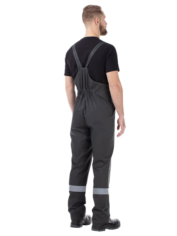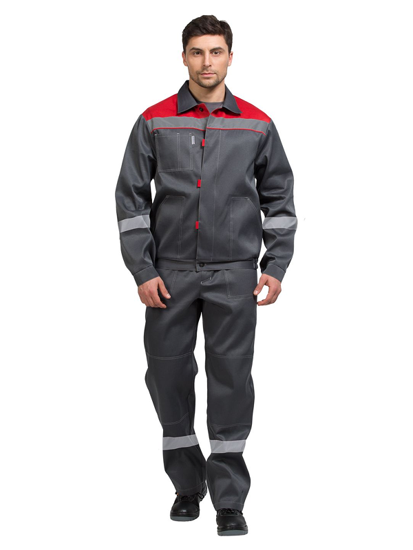 По низу кокеток, на рукавах куртки и по низу брюк широкие световозвращающие (светоотражающие) полосы, благодаря чему данная спецодежда приобретает защитные свойства в условиях плохой видимости.
