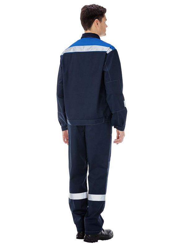 По низу кокеток, на рукавах куртки и по низу брюк широкие световозвращающие (светоотражающие) полосы, благодаря чему данная спецодежда приобретает защитные свойства в условиях плохой видимости.