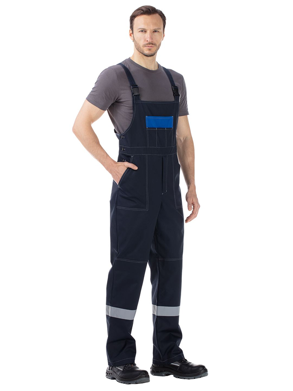 — накладные карманы с косыми входами спереди на полукомбинезоне, в области груди карман с несколькими отделами,
