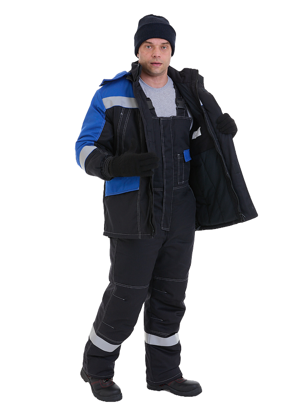 - Полукомбинезон с регулируемыми бретелями, наколенниками, утепляющей подкладкой.