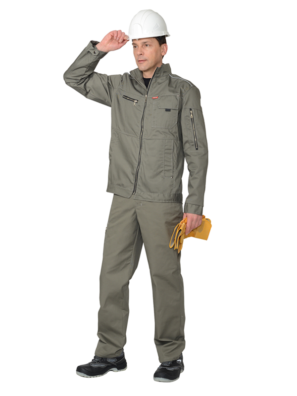 Куртка прямого силуэта, с центральной застежкой на металлическую молнию, с нагрудным накладным и прорезным, застегивающимся на молнию, карманами; нижними внутренними карманами с листочками; пояс и манжеты рукавов регулируются по ширине патами и кнопками. Воротник-стойка.