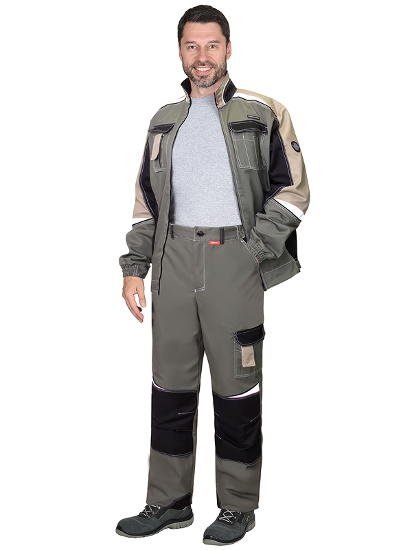 Брюки с застёжкой спереди на молнию (гульфик), с отрезным поясом, застегивается на пуговицу, с боковыми внутренними карманами на передних половинках, с накладными карманами на правой задней половинке и на левом боковом шве, с наколенниками. В брюках предусмотрены светоотражающие элементы, для обозначения сигнальной видимости.