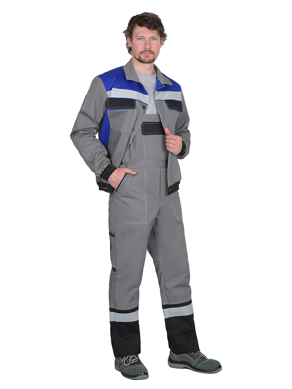 Костюм летний состоит из куртки и полукомбинезона. В костюме предусмотрена лента светоотражающая ш.50 мм, что обеспечивает видимость рабочего при любом освещении.