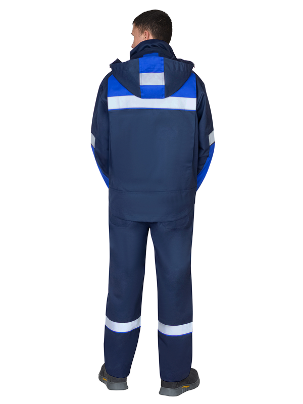 Куртка прямого силуэта, с втачным воротником стойка, с центральной застёжкой на молнию от края воротника, накрытую ветрозащитным клапаном на липучках, с верхними и нижними накладными карманами, со съемным капюшоном, линия низа спинки фигурная. Рукава втачные, с манжетой, частично стянутой на резинку. В куртке предусмотрена лента светоотражающая 50 мм для обозначения сигнальной видимости.