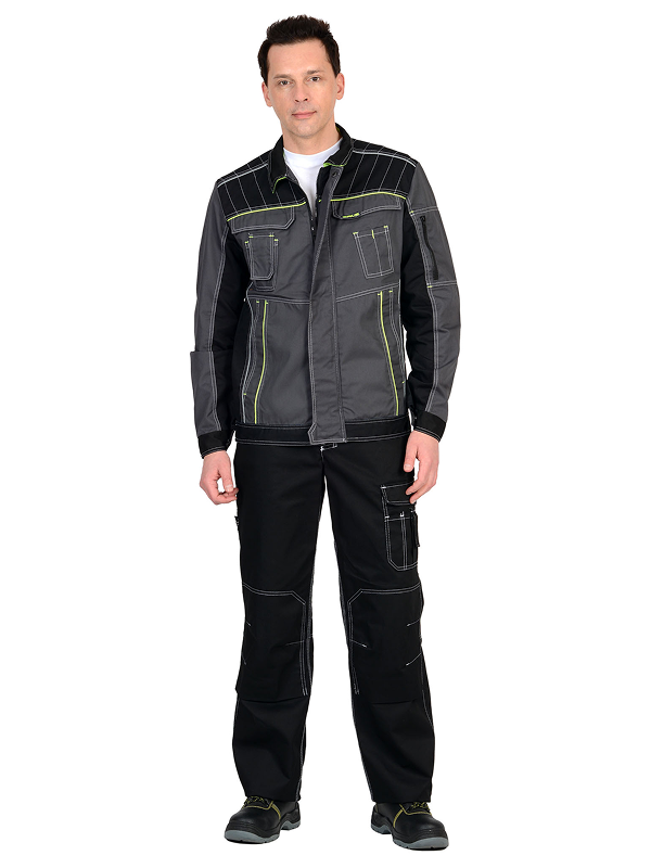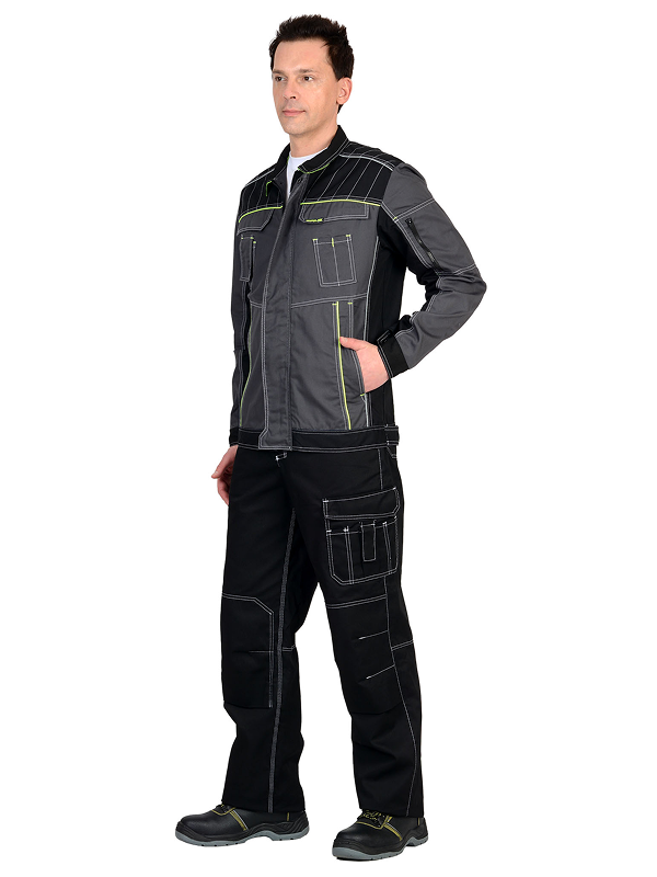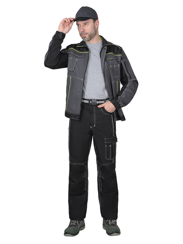 Брюки прямые, на притачном поясе, с застёжкой спереди на молния, с боковыми внутренними карманами, с часовым карманом; на задних половинках с отрезной кокеткой, двумя накладными карманами и карманами под инструменты. В брюках предусмотрен СВ кант для обозначения сигнальной видимости.