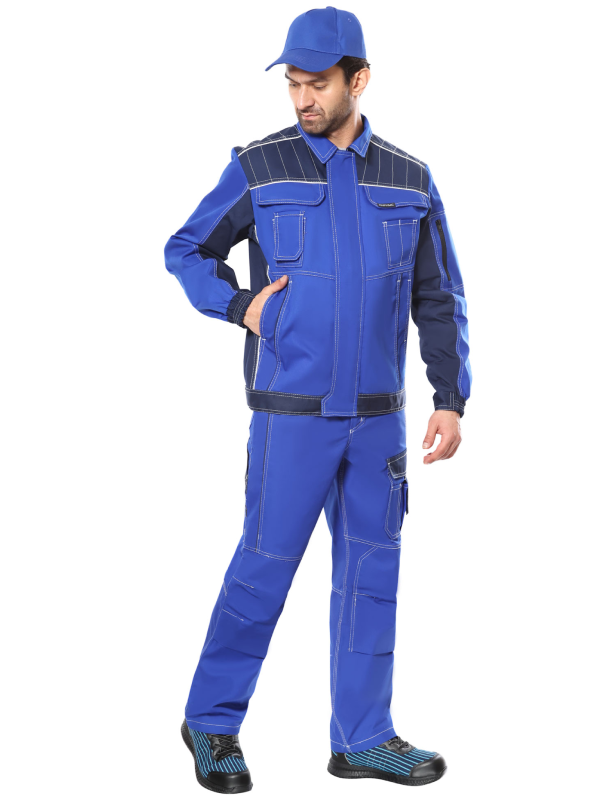 Материал верха основой: ткань смешанная, полиэфирнохлопковая, с водоотталкивающей пропиткой (ВО), пл. 245 г/м², состав 65% ПЭ, 35% ХБ, Цвет: васильковый