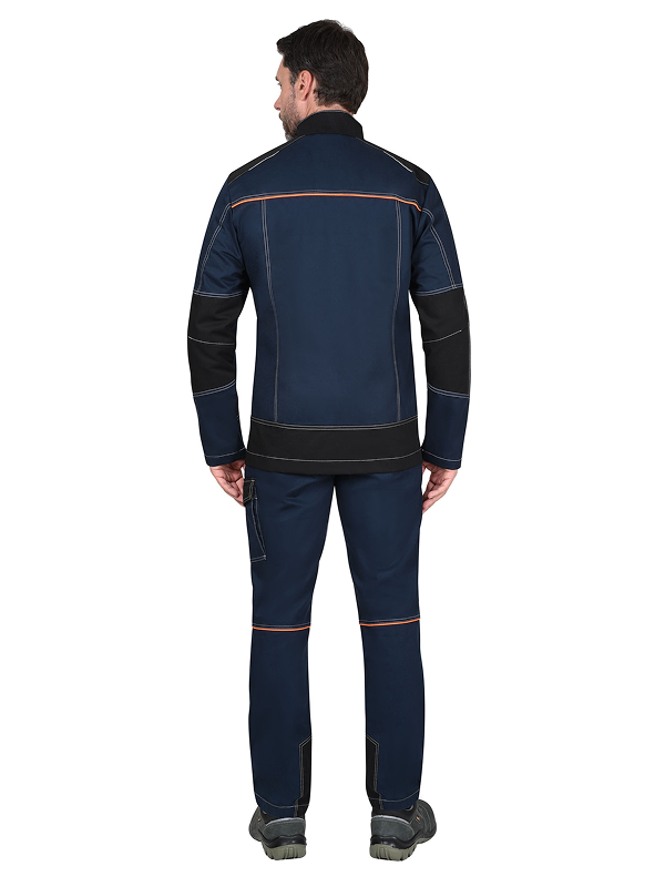 Куртка прямого силуэта, удлиненная, с воротником стойка, с центральной застёжкой на молнию, накрытую ветрозащитным клапаном с кнопками. Куртка с верхними карманами с молнией и нижними карманами с наклонным входом. Рукава с накладками в области локтя. Для обеспечения видимости при плохом освещении в куртке предусмотрены детали из светоотражающей полосы.