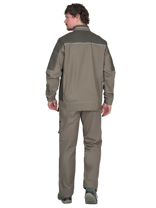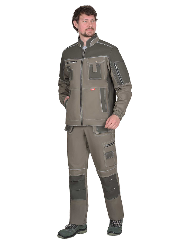 Куртка выполнена из ткани «Канвас Комфорт», прямого силуэта, с центральной застежкой на металлическую молнию, воротником — «стойкой», с различными многофункциональными карманами. Рукава втачные, левый с накладным карманом с застежкой на металлическую молнию, с притачными манжетами, частично стянутыми резинкой. В куртке предусмотрен кант СВ 3мм светоотражающий 100 К для обозначение видимости. На средней части левой полочки выполнены 2 кармана, настроченные один на другой с фигурным клапаном, застегивающимся на 1 кнопку. На средней части правой полочки в шве кокетки прорезной карман, в рамку, застегивающийся на металлическую молнию и накладной карман, разделенный на три секции с патой на кнопку. Нижние части полочек с прорезными карманами в листочку с наклонным входом. Воротник – «стойка» с кантом СВ 3 мм. Пояс фигурный формы.