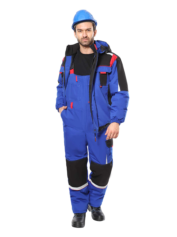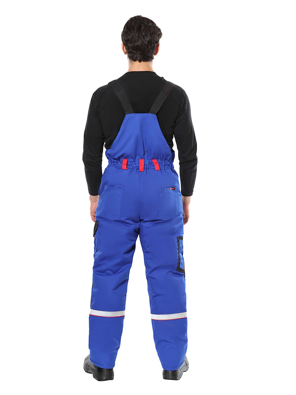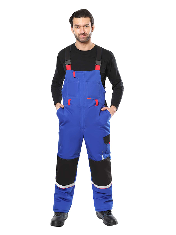 Полукомбинезон на утеплённой подкладке, с бретелями, с центральной застёжкой на молнию, которая закрыта ветрозащитной планкой, с наколенниками, спереди полукомбинезон с нагрудными и боковыми карманами, сзади с верхними карманами и карманами для инструментов, с резинкой в области талии. Бретели с помочной резинкой, регулируются пряжками — фастексами. Для обозначения сигнальной видимости в полукомбинезоне предусмотрена светоотражающая лента.
