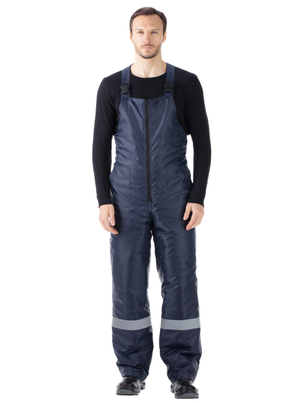 Для безопасности в условиях плохой видимости предусмотрены световозвращающие полосы: на верху и рукавах куртки, по низу брючин полукомбинезона.