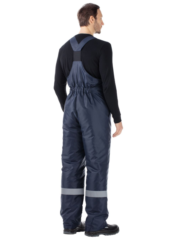 Полукомбинезон: регулируемые бретели с пряжками-фастексами; центральная застёжка — двухзамковая молния; эластичная кулиса на поясе спинки для регулировки объёма; боковые накладные карманы.