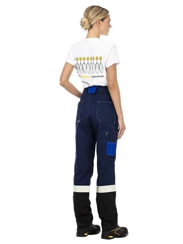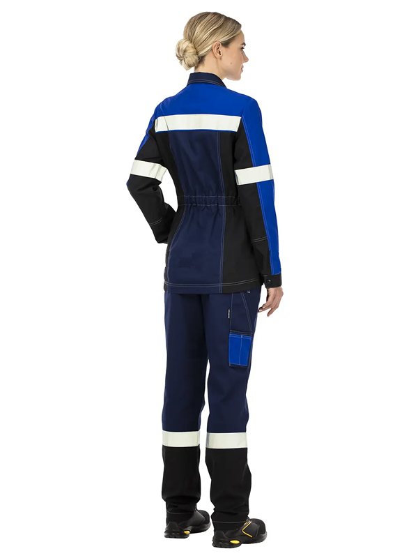 По низу кокеток, на рукавах куртки и по низу брюк широкие световозвращающие полосы для безопасной работы в условиях плохой видимости.
