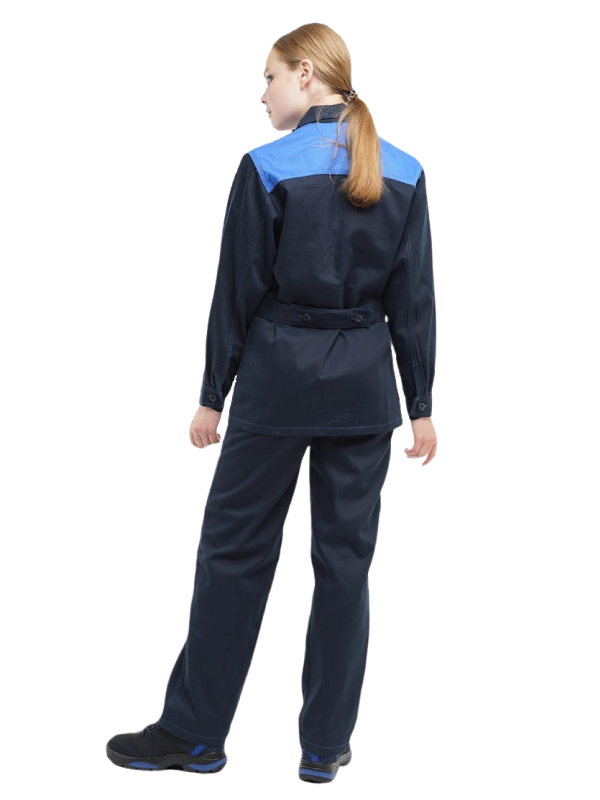 Задние половинки: талиевые вытачки, 1 фигурный накладной карман (слева).