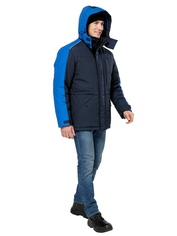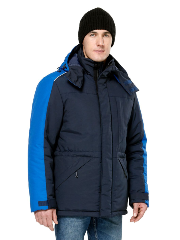 Рукава втачные, с регулировкой объёма и трикотажными манжетами. Воротник-стойка с флисовой подкладкой. Съёмный капюшон с козырьком, регулирующийся по объёму.