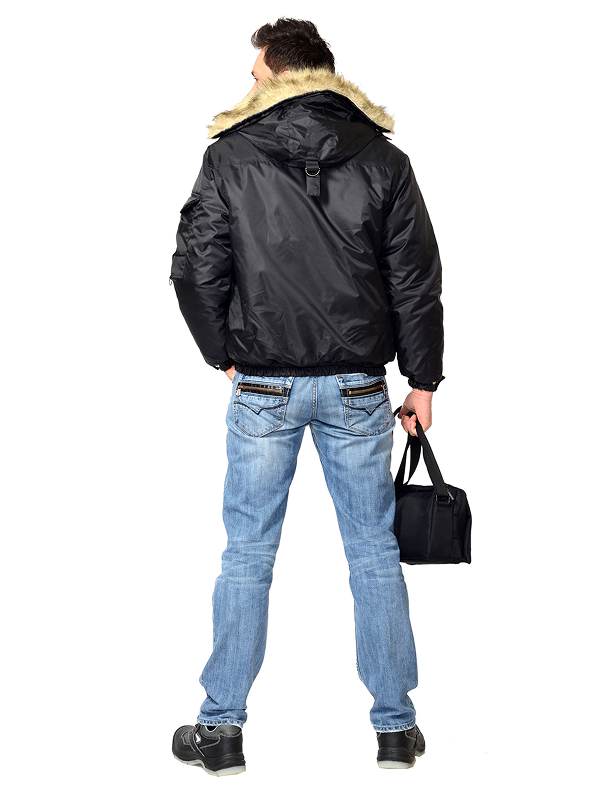 Куртка прямого силуэта, укороченная, на утепленной подкладке, с втачным утепленным капюшоном, с центральной застёжкой на молнию от края капюшона до низа, накрытую ветрозащитным клапаном от горловины до низа куртки на кнопках, с внутренней планкой по правому борту. Куртка с верхними и нижними карманами, с внутренним карманом на пуговицу с левой стороны. Рукава втачные, с манжетами с резинкой и патами на кнопку. Куртка с втачным утепленным капюшоном с опушкой из искусственного меха, с отрезным поясом с резинкой по низу куртки.