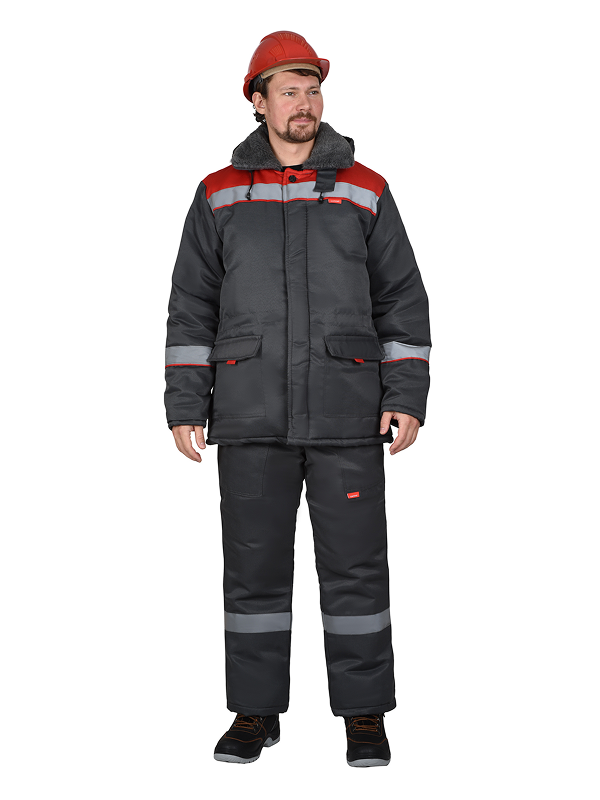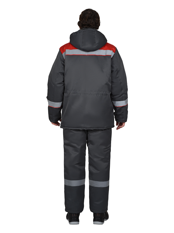 Куртка зимняя удлинённая, с утеплённой подкладкой, с отложным меховым воротником, с потайной застёжкой на пуговицы, со съёмным утеплённым капюшоном, с нижними карманами с клапаном с липучкой и карманом на подкладке с липучкой. По талии куртки кулиска, для регулировки объёма куртки. В куртке предусмотрена СОП для обеспечения видимости при любом освещении.