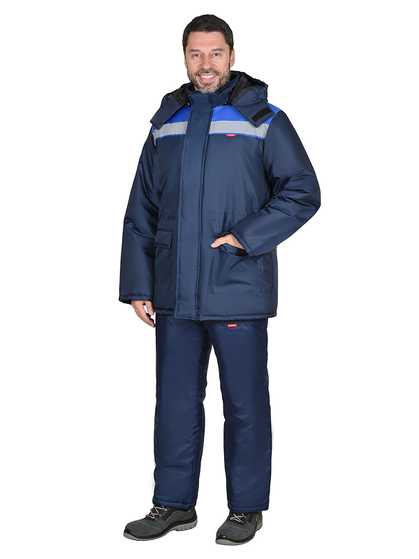 Куртка зимняя «БРИГАДИР», темно-синяя с васильковым и СОП
