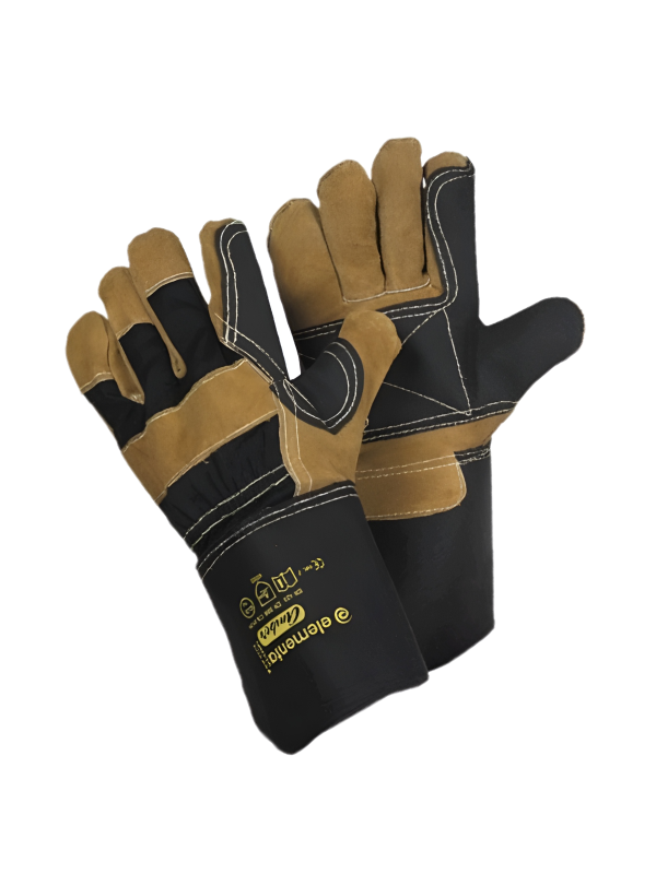 Перчатки из воловьего спилка — прочная защита рук для тяжелых работ, где важны надежный хват и безопасность от порезов и истирания. Спилок ценят за износостойкость и гибкость, поэтому в них удобно работать с инструментом и деталями без ощущения «деревянных» пальцев. Ладонь из спилка уверенно держит разные поверхности, а усиление на тыльной стороне дополнительно прикрывает суставы, когда часто задеваете кромки и металл. Тыльная часть из натурального хлопка дает больше комфорта и воздухообмена при долгой смене, а прочная прошивка нитью KEVLAR® помогает швам дольше выдерживать нагрузку. Широкая удлиненная жесткая манжета защищает запястье и фиксирует перчатку поверх рукава.