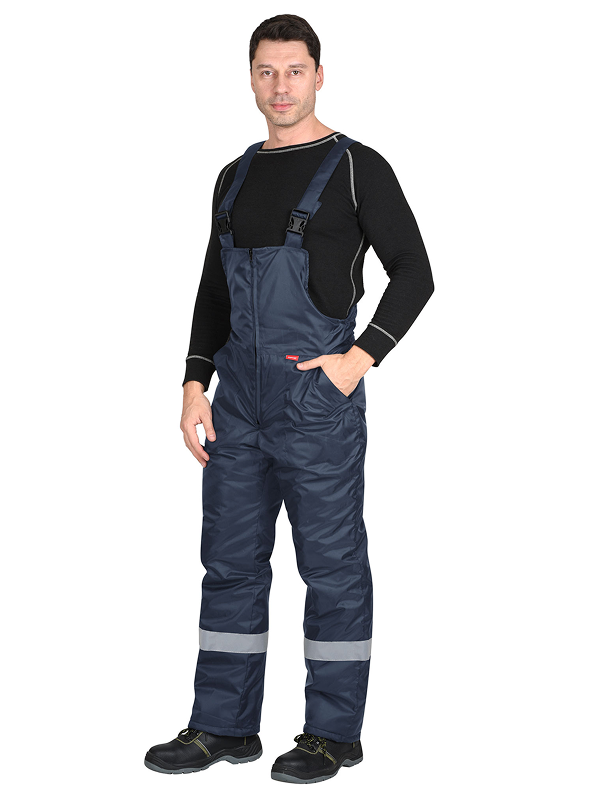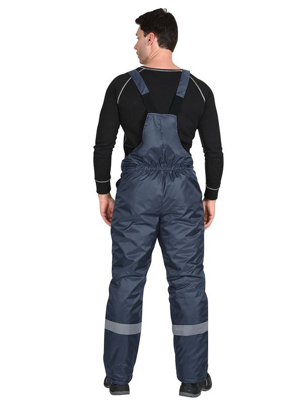 Полукомбинезон с притачной утеплённой подкладкой, с застёжкой на молнию, с боковыми накладными карманами. По спинке частично резинка для лучшего прилегания. Полукомбинезон с бретелями, длина регулируется резинкой и застежкой-фастексом. Особый вид плетения ткани придает однородную структуру и блеск. Материал при сочетании ткацкого плетения и синтетической нити обеспечивается высокой надежностью, мало подвержен повреждению и истиранию волокон. Полукомбинезон с лентой СОП шириной 50мм для обозначения сигнальной видимости.