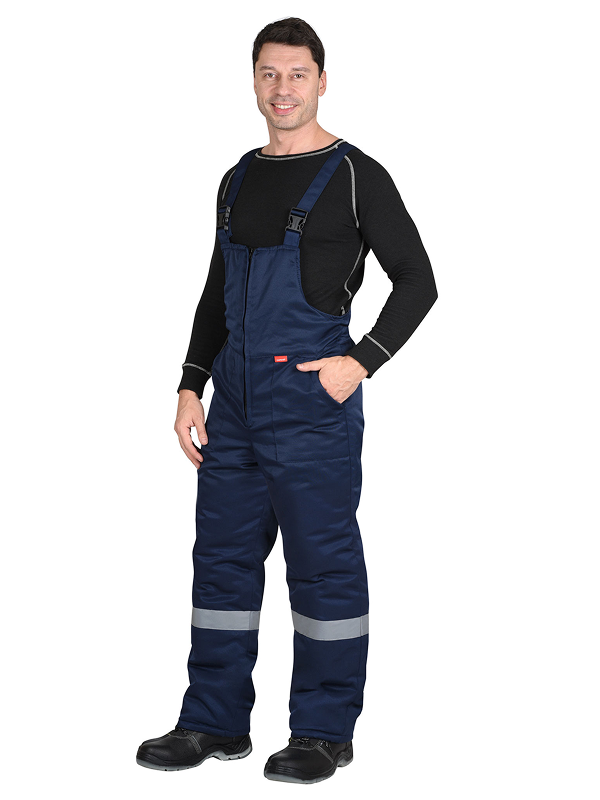 Полукомбинезон с притачной утеплённой подкладкой, с застёжкой на молнию, с боковыми накладными карманами. По спинке частично резинка для лучшего прилегания. Полукомбинезон с бретелями, длина регулируется резинкой и застежкой-фастексом. Полукомбинезон с лентой СОП шириной 50мм для обозначения сигнальной видимости.