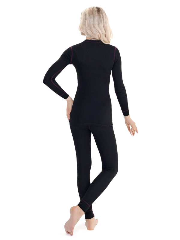 Термобелье женское (спортивный термокомплект). Полотно представляет собой комбинированную ткань из полихлопка, что позволяет как сохранять тепло, так и избавляться от избыточного потоотделения, возникающего во время занятий зимними видами спорта. Прекрасно подойдет для игры в хоккей, катания на коньках, беговых и горных лыж, катания на тюбингах и т.п. Двухсторонняя терморегуляция. Плоские швы, исключающие натирание тела при использовании термобелья. Данный комплект термобелья также подходит для туризма и отдыха на природе. Антибактериальная обработка ионами серебра. Нейтрализация запаха пота. Для достижения максимального эффекта используйте 3-х слойную систему одежды : термобелье, флис/шерсть и влаго и ветрозащита. Область применения от +10 до -25 градусов Цельсия. Плотность 200 г/м.